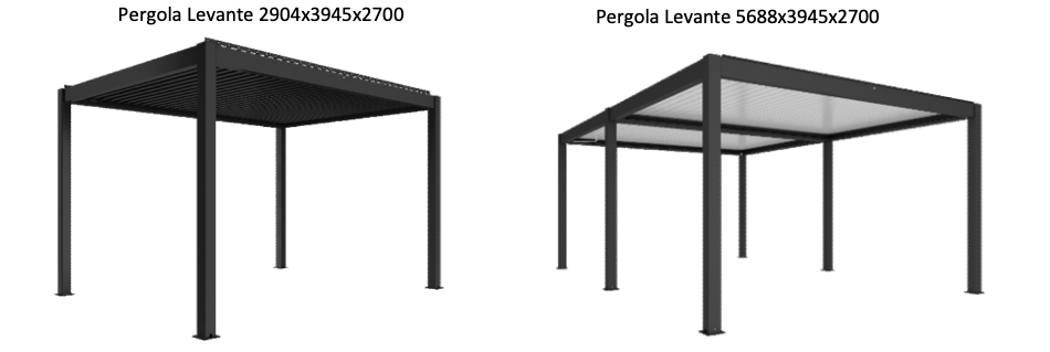 Praktiline valik on LEVANTE Manual mudel. See on usaldusväärne konstruktsioon käsitsi juhitavate katuseliistudega, nii konstruktsioon kui ka katuseliistud on populaarses antratsiitvärvis RAL7016. Võimalus valida pergola mõõtmed 2906 × 3896 mm ja 2906 × 5712 mm muudab selle ideaalseks nii kompaktsetele kui ka avaratele terrassidele. Lisamugavuse tagamiseks saab integreerida horisontaalsed alumiiniumist külgliistud, mis võimaldavad reguleerida valguse ja õhuvoolu ning pakuvad rohkem privaatsust.